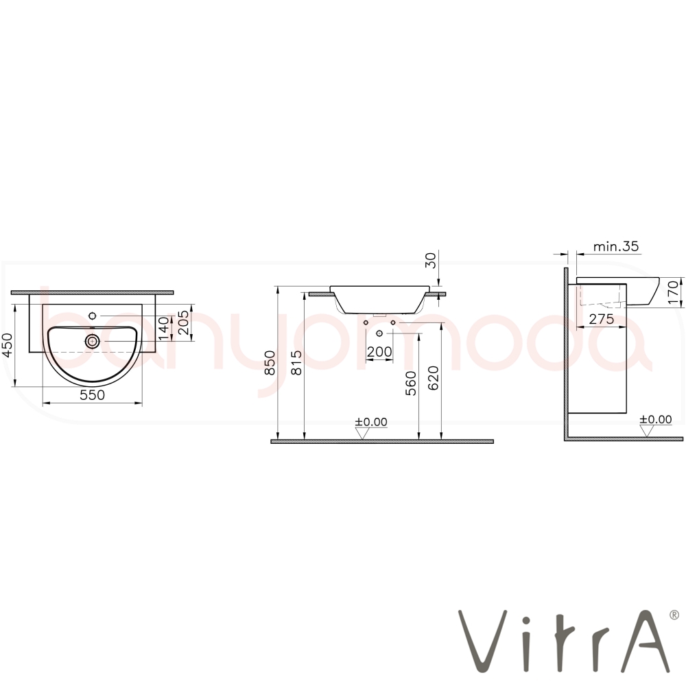 | Ürün Adı: | Vitra Integra Köşeli Dar Yarım Tezgah Lavabo, 55 cm |