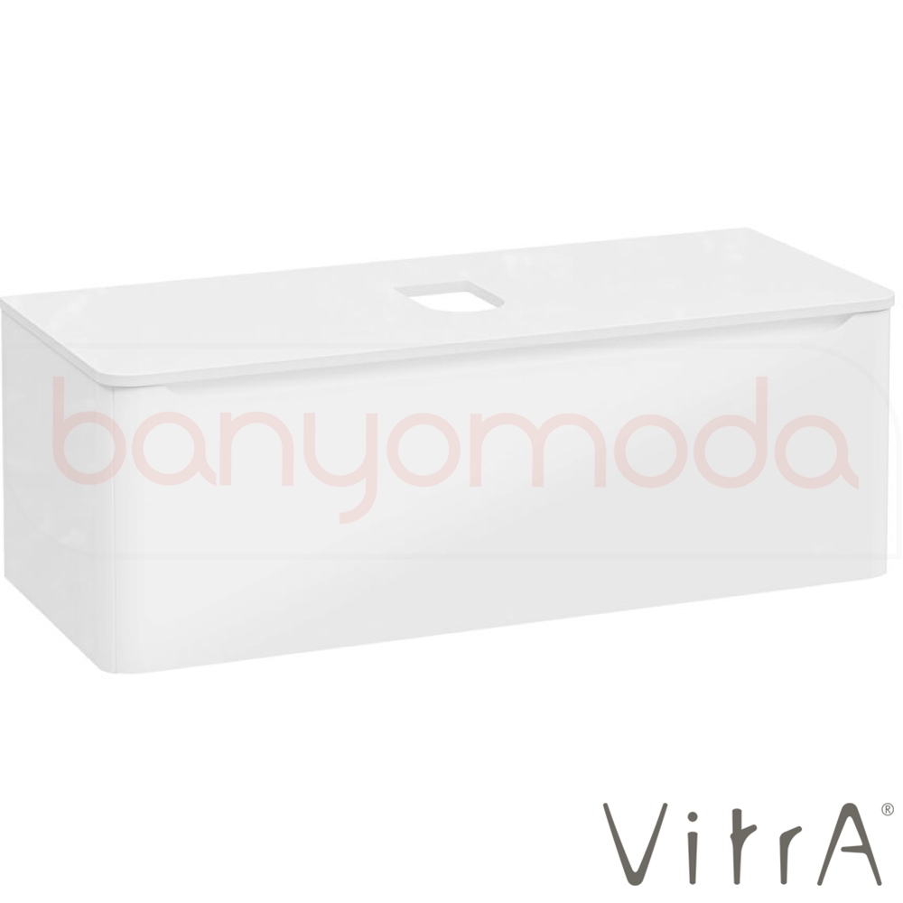Vitra Integra Round Tek Çekmeceli Çanak Lavabo Uyumlu Lavabo Dolabı, Parlak Beyaz, 120 cm (Çanak Lavabo Hariç-Armatür Deliksiz)