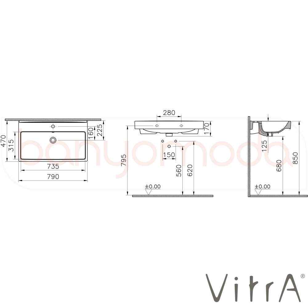 | Ürün Adı: | Vitra Integra Square Dikdörtgen Lavabo, 80x47 cm |