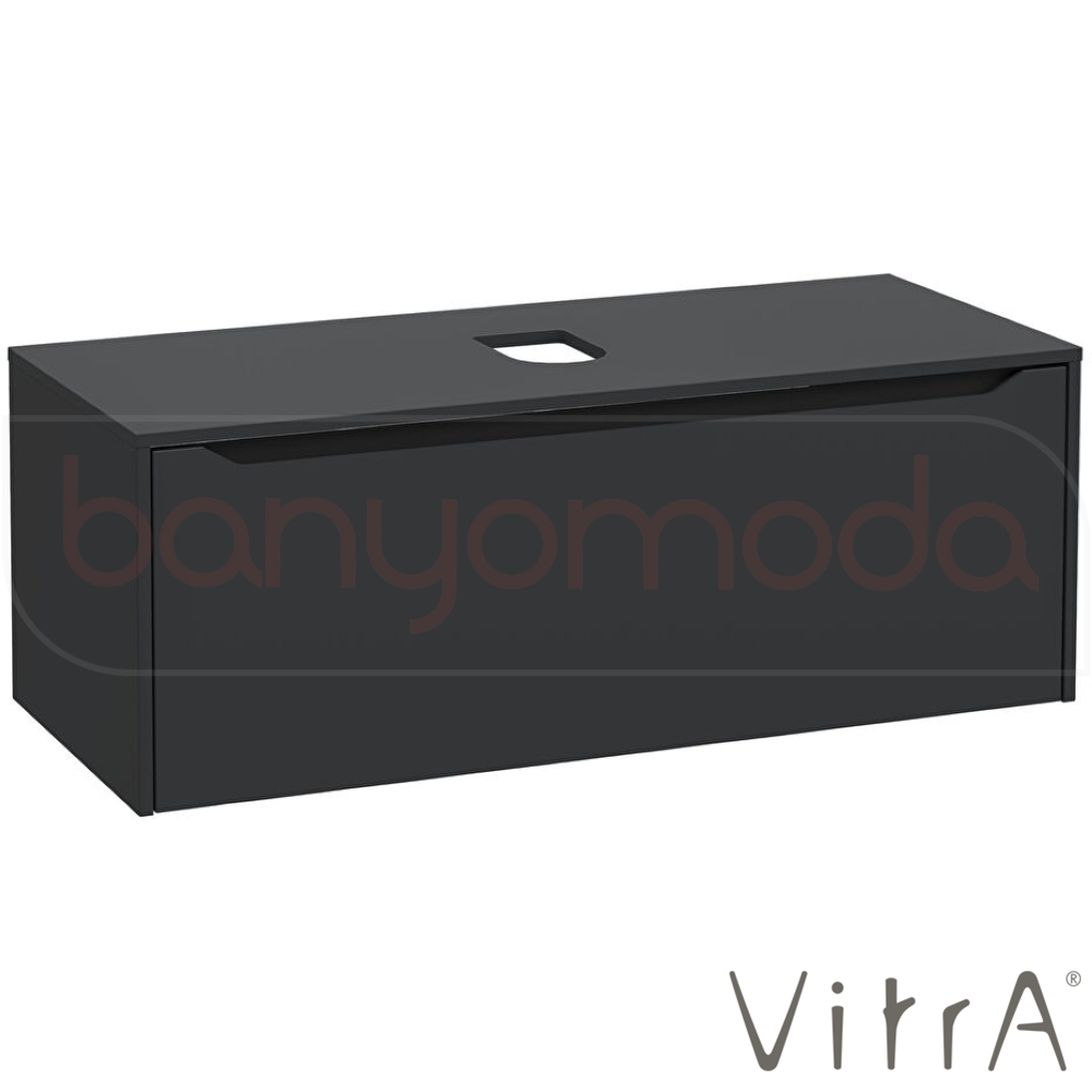 Vitra Integra Square Tek Çekmeceli Çanak Lavabo Uyumlu Lavabo Dolabı, Mat Grafit, 120 cm (Çanak Lavabo Hariç-Armatür Deliksiz)