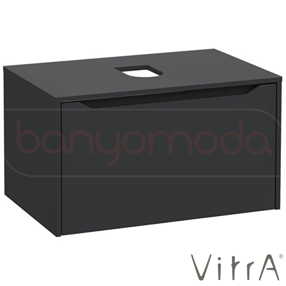 Vitra Integra Square Tek Çekmeceli Çanak Lavabo Uyumlu Lavabo Dolabı, Mat Grafit, 80 cm (Çanak Lavabo Hariç-Armatür Deliksiz)
