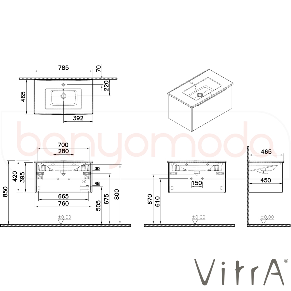 | Ürün Adı: | Vitra Integra Square Tek Çekmeceli Lavabo Dolabı, Ayaksız, 80 cm, Mat Açık Gri |