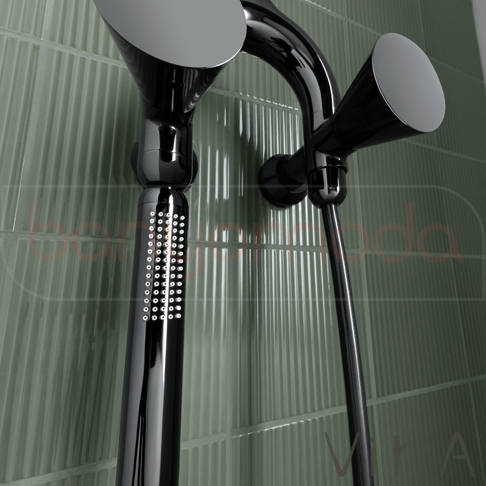 Vitra Liquid Manyetik El Duşlu, Duş Kolonu ve Termostatik Duş Bataryası Sistemi, Parlak Siyah