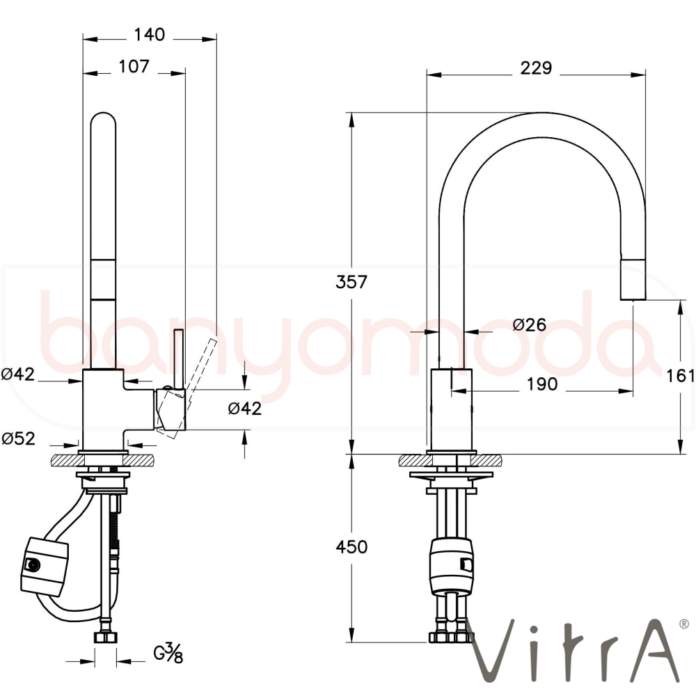 | Uyarı ve Genel Açıklamalar: | Çıkış ucu uzunluğu 190 mm dir. Çıkış ucu yüksekliği 161 mm dir. Debi kısıcılı özel perlatörü sayesinde maks. 5 L/dk su akışı sağlar. |