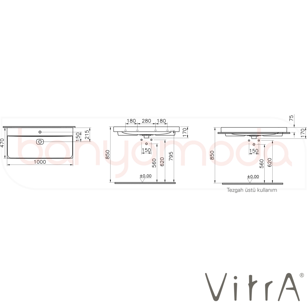 | Ürün Adı: | Vitra Metropole Çanak Lavabo, 100 cm, VitraClean |