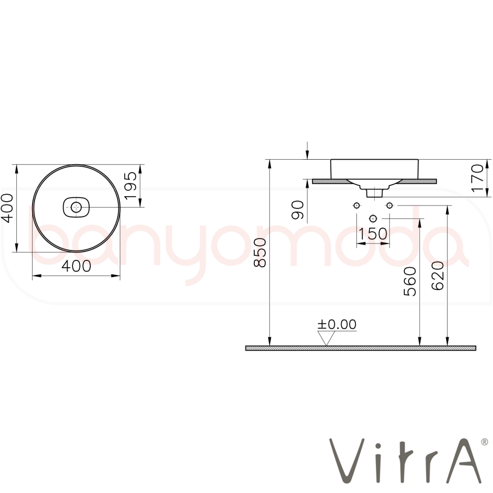 | Ürün Adı: | Vitra Metropole Çanak Lavabo, 40 cm, VitraClean |