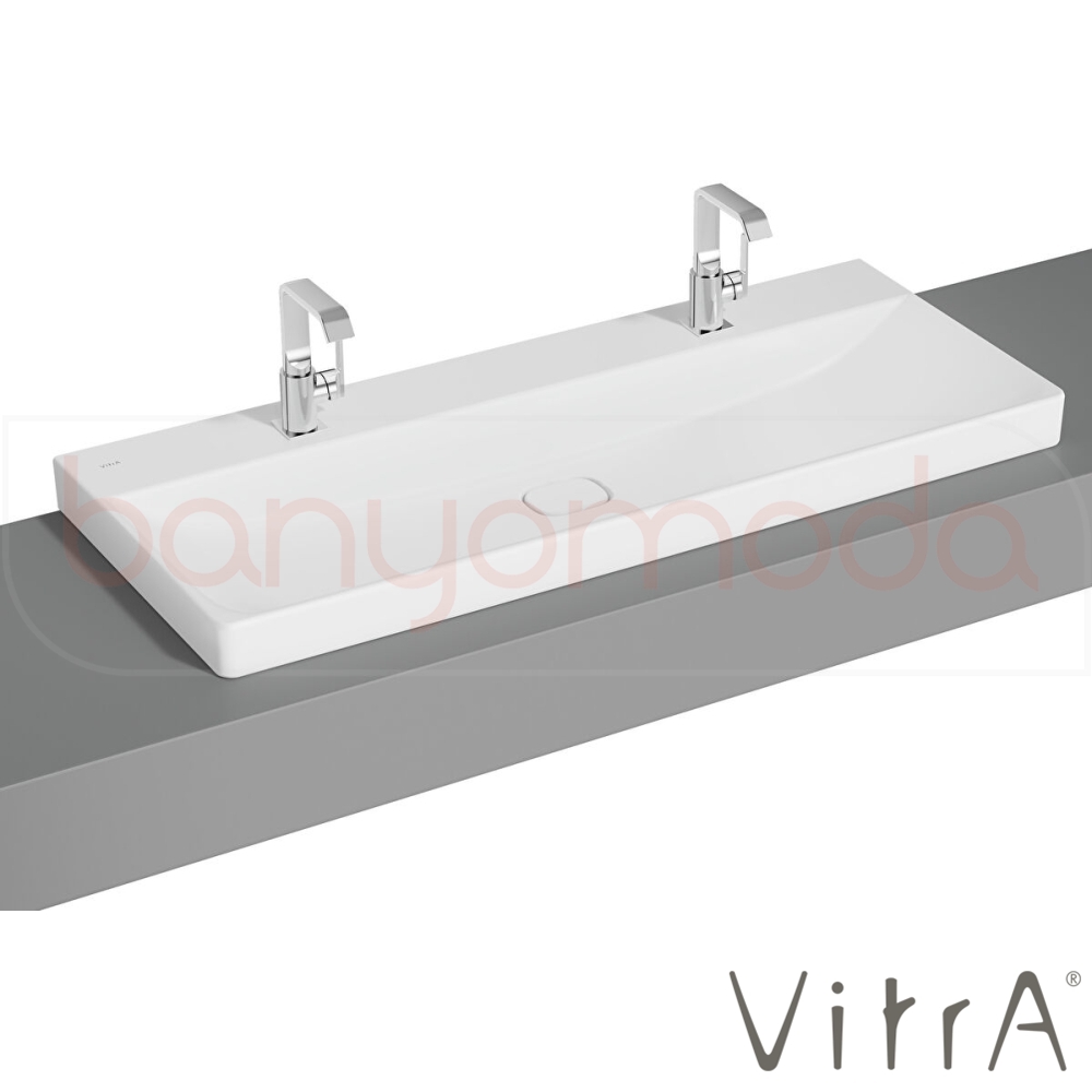 Vitra Metropole Çift Armatür Delikli Çanak Lavabo, 120 cm, Mat Beyaz, VitraClean