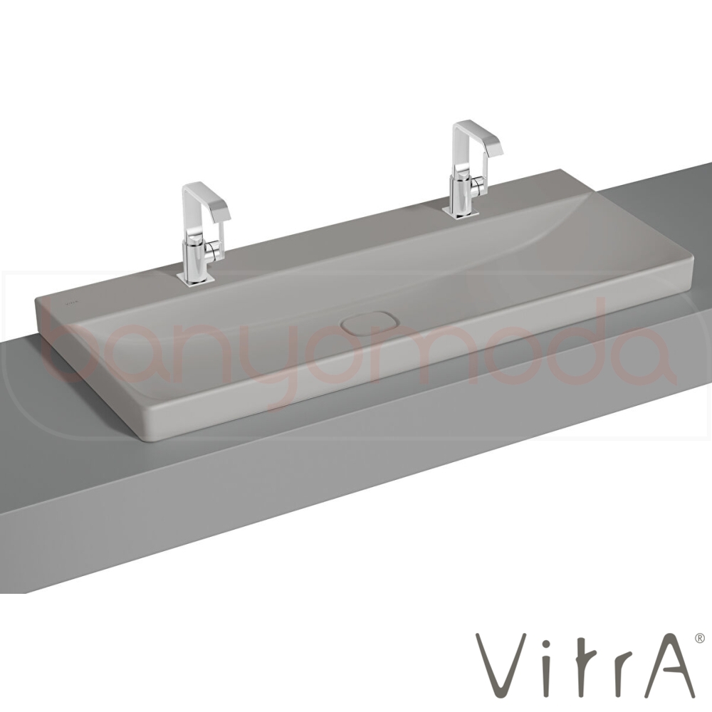 Vitra Metropole Çift Armatür Delikli Çanak Lavabo, 120 cm, Mat Taş Gri, VitraClean
