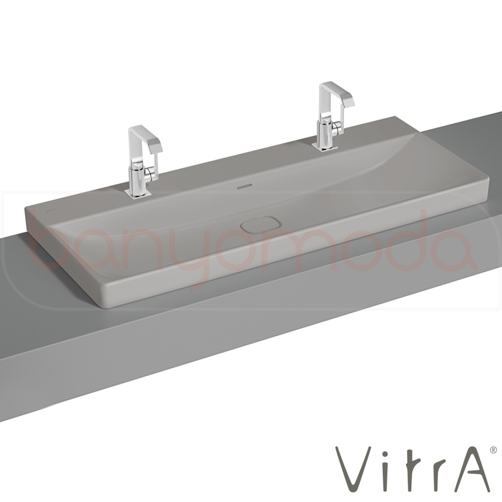 Vitra Metropole Çift Armatür Delikli Çanak Lavabo, 120 cm, Mat Taş Gri, VitraClean