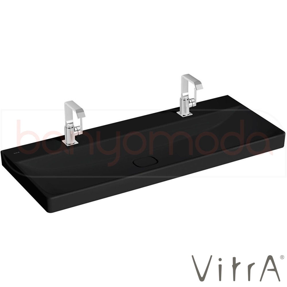 Vitra Metropole Çift Armatür Delikli Lavabo, 120 cm, Mat Siyah, VitraClean - 7530B483-0041