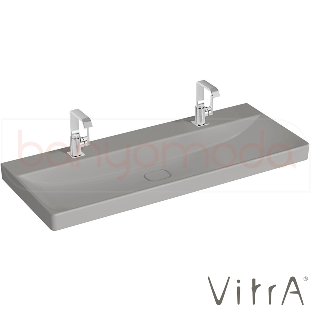 Vitra Metropole Çift Armatür Delikli Lavabo, 120 cm, Mat Taş Gri, VitraClean