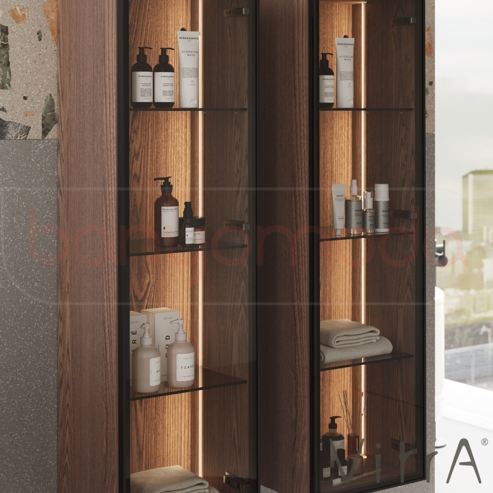 Vitra Metropole Edge Cam Kapaklı Kısa Boy Dolabı, 35 cm, Ceviz (Sağ)