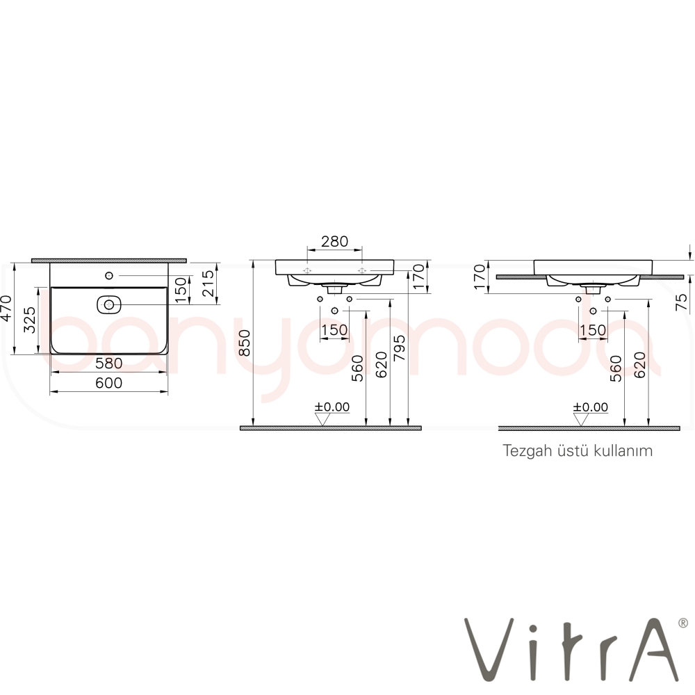 | Ürün Adı: | Vitra Metropole Lavabo, 60 cm, Mat Beyaz, VitraClean |