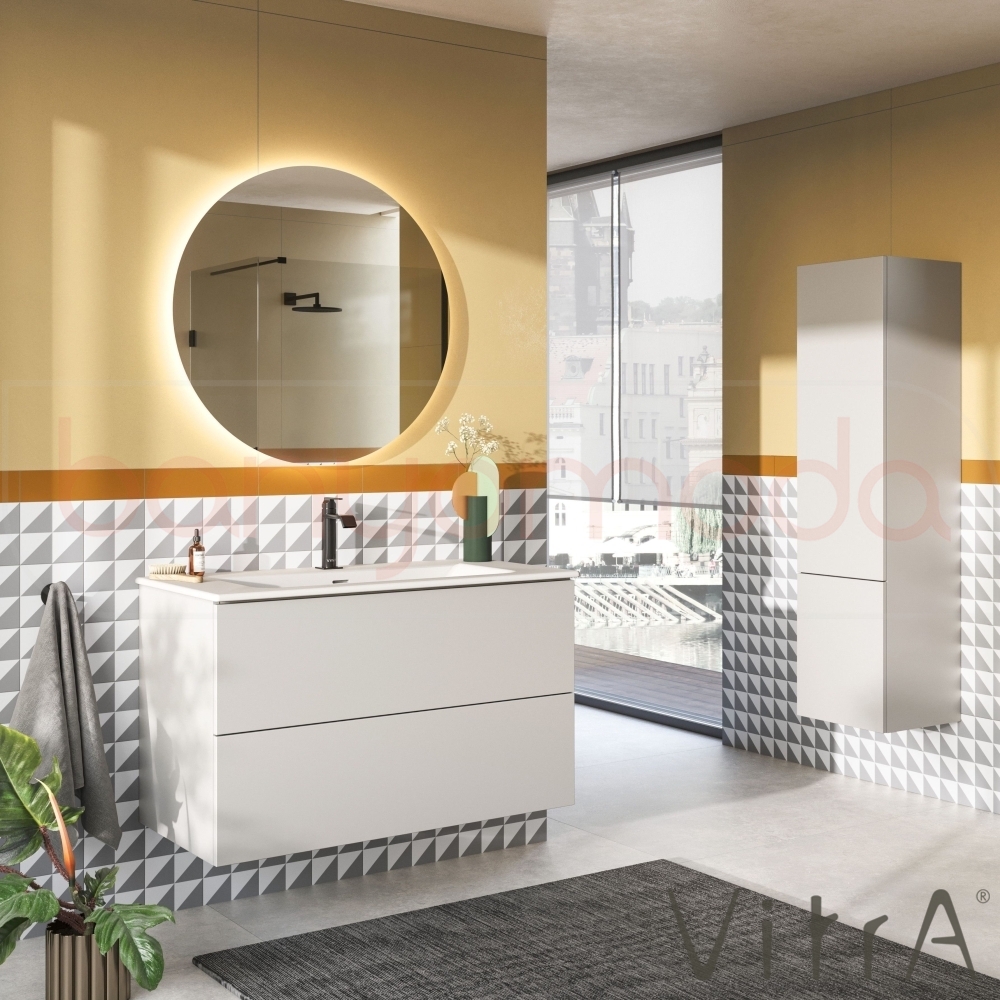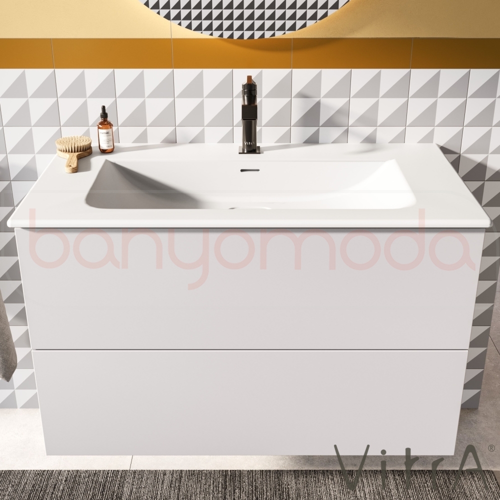 Vitra Metropole Pure Lavabo Dolabı, 2 Çekmeceli, Etajerli Lavabolu, 100 cm, Mat Açık Gri