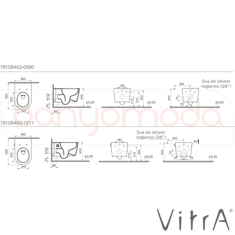 | Uyarı ve Genel Açıklamalar: | Klozet kapağı hariçtir. Ayrıca sipariş verilmelidir. 208-483R009, 210-483R009 ve 231-483R009 kodlu yavaş kapanır klozet kapakları ile uyumludur. Su tasarruflu 770-XXXX-01, 761-XXXX-01, 762-XXXX-01 ve 768-XXXX-01 kodlu gömme rezervuarlar ile uyumludur. Taharet borusu girişi sıva altı uygulamalı, clean, gizli montaj. |