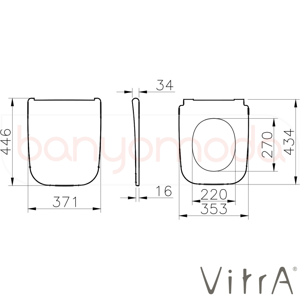 | Uyarı ve Genel Açıklamalar: | Duroplast, süper slim, tek kat görünümlü, metal menteşeli, üstten sıkmalı, yavaş kapanır, kolay sök-tak. Vitra Metropole Square, Integra Square, Zentrum Square ve S20 Square serisi klozetler ile uyumludur. |