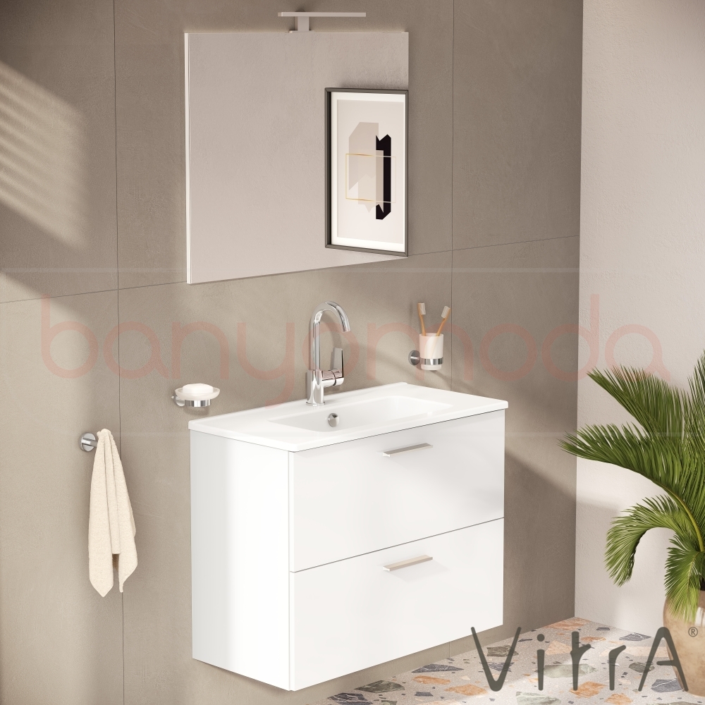 Vitra Mia Demonte Set, 80 cm, Çekmeceli, (Lavabo Dolabı, Aydınlatmalı Ayna), Parlak Beyaz