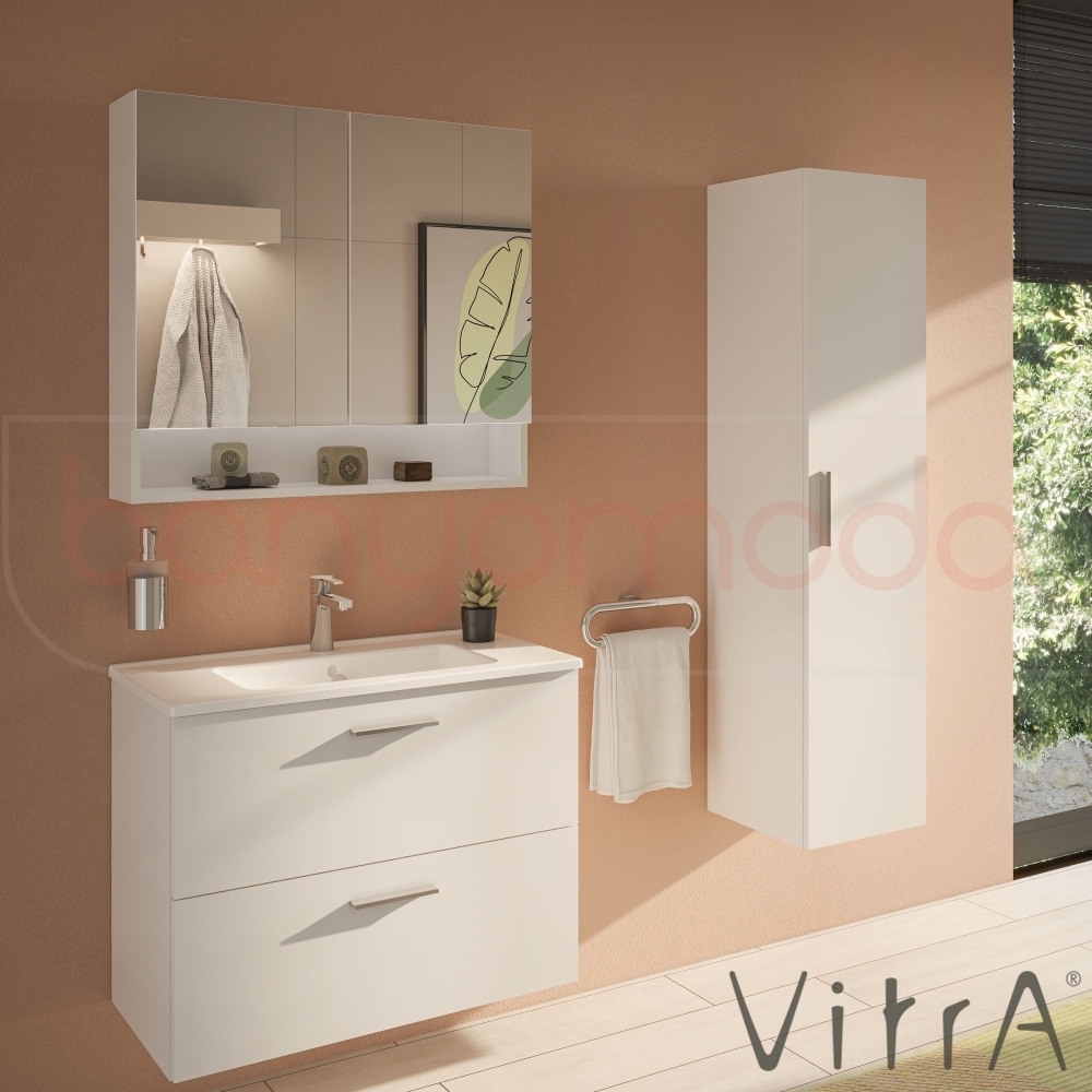 Vitra Mia Demonte Set, 80 cm, Çekmeceli, (Lavabo Dolabı, Raflı-Dolaplı Ayna), Beyaz
