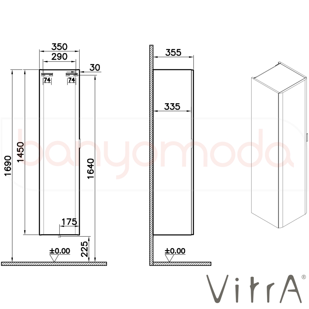Marka: Vitra Ürün Adı: Vitra Mia Plus Round Boy Dolabı, Parlak Beyaz Ürün Kodu: 69810 Seri: Mia Plus Round Renk: Parlak Beyaz Ölçü: 35x36x145 cm Montaj Tipi: Asma Kaplama: MDF Üzeri Melamin Kapak Özelliği: Yavaş kapanır Gövde Malzemesi: MDF Üzeri Melamin Kapak Malzemesi: MDF Üzeri PVC Yetkili Servis Hizmeti: Var Ücretsiz Montaj: Yok Garanti Süresi: 2 yıl Üretim Yeri: Türkiye Uyarı ve Genel Açıklamalar: Kapak açılım yönü montaj esnasında sağ/sol istenen yönde ayarlanabilir. Gövde: MDF üzeri melamin kaplama. Kapak : MDF üzeri PVC (termoform) kaplama.