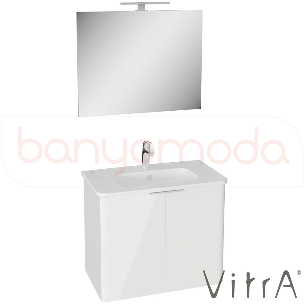 Vitra Mia Plus Round Demonte Set, 80 cm, Kapaklı, (Lavabo Dolabı, Aydınlatmalı Ayna), Parlak Beyaz - 69822