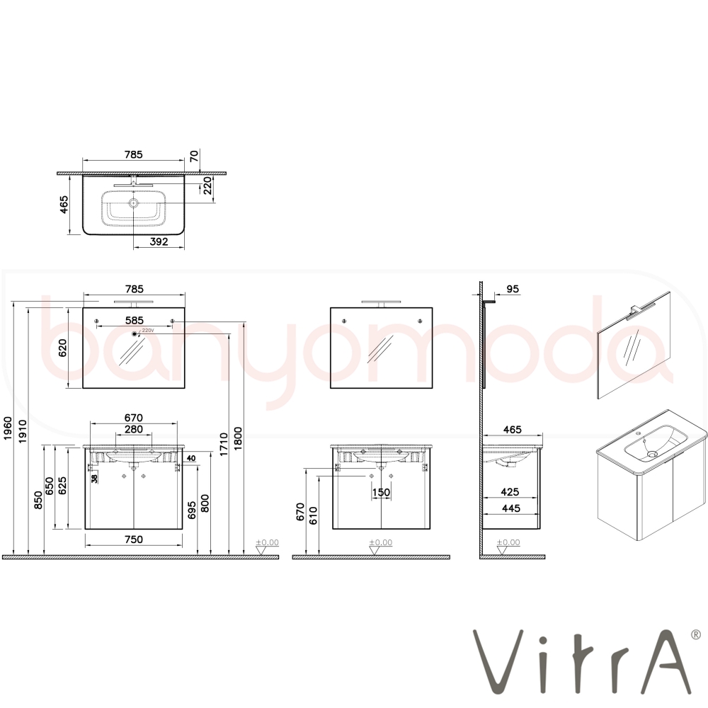 | Uyarı ve Genel Açıklamalar: | Set; lavabo dolabı, 7681B003-0001 seramik lavabo ve led aydınlatmalı düz aynadan oluşmaktadır. Aynanın Ölçüleri: 79x10x62 cm. Sifon alt grubu ve süzgeç ürüne dahildir. 6500 K ve IP44, aplik aydınlatmalıdır. F sınıfı enerji verimliliğine sahiptir. Oda anahtarına bağlanmalıdır. |