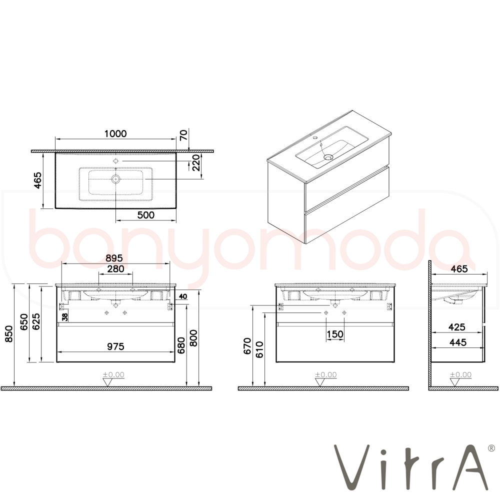 | Ürün Adı: | Vitra Mia Plus Square Çift Çekmeceli Lavabo Dolabı, 100 cm, Parlak Antrasit |