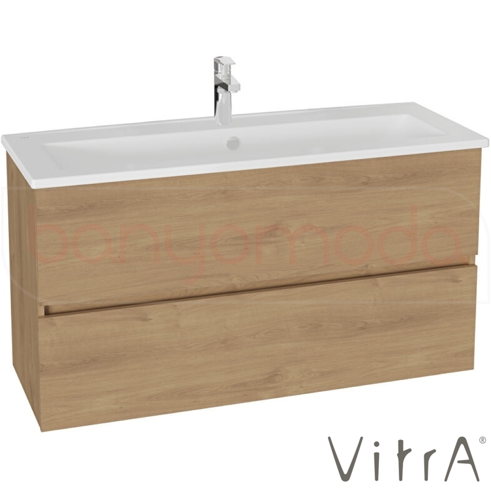 Vitra Mia Plus Square Çift Çekmeceli Lavabo Dolabı, Tek Armatür Delikli Lavabolu, 120 cm, Altın Meşe