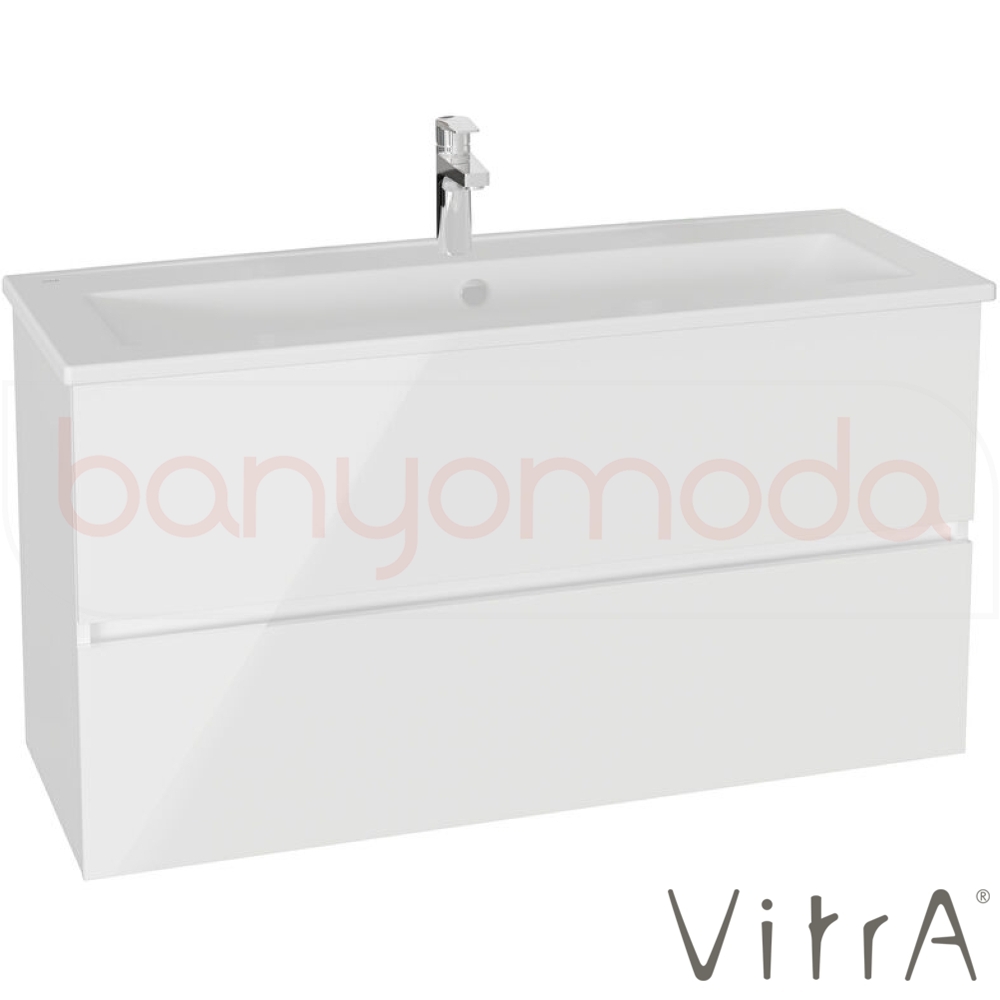 Vitra Mia Plus Square Çift Çekmeceli Lavabo Dolabı, Tek Armatür Delikli Lavabolu, 120 cm, Parlak Beyaz - 80584