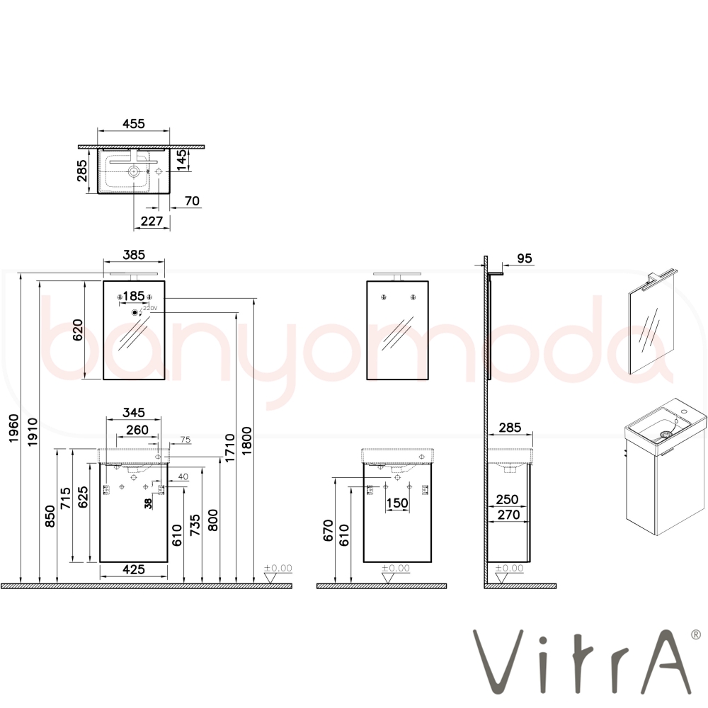 | Ürün Adı: | Vitra Mia Plus Square Demonte Set, 45 cm, Kapaklı, (Lavabo Dolabı, Aydınlatmalı Ayna), Cordoba |