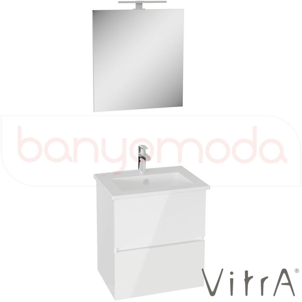 Vitra Mia Plus Square Demonte Set, 60 cm, Çift Çekmeceli, (Lavabo Dolabı, Aydınlatmalı Ayna), Parlak Beyaz - 69736