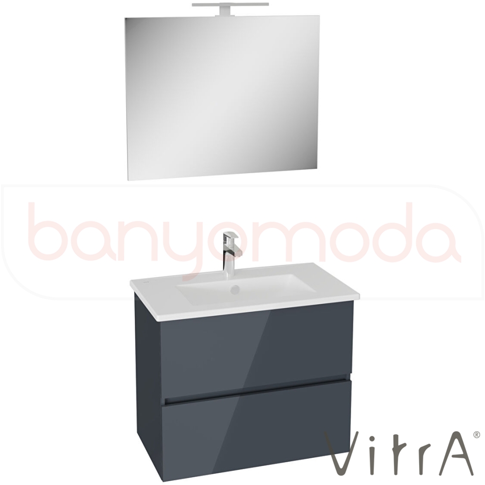 Vitra Mia Plus Square Demonte Set, 80 cm, Çift Çekmeceli, (Lavabo Dolabı, Aydınlatmalı Ayna), Parlak Antrasit - 69747