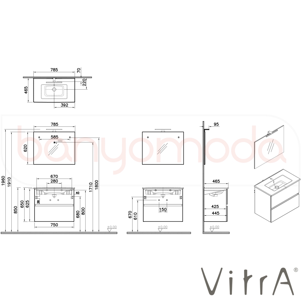 | Uyarı ve Genel Açıklamalar: | Set; lavabo dolabı, 7677B003-0001 seramik lavabo ve led aydınlatmalı düz aynadan oluşmaktadır. Aynanın Ölçüleri: 79x10x62 cm. Sifon alt grubu ve süzgeç ürüne dahildir. 6500 K ve IP44, aplik aydınlatmalıdır. F sınıfı enerji verimliliğine sahiptir. Oda anahtarına bağlanmalıdır. |