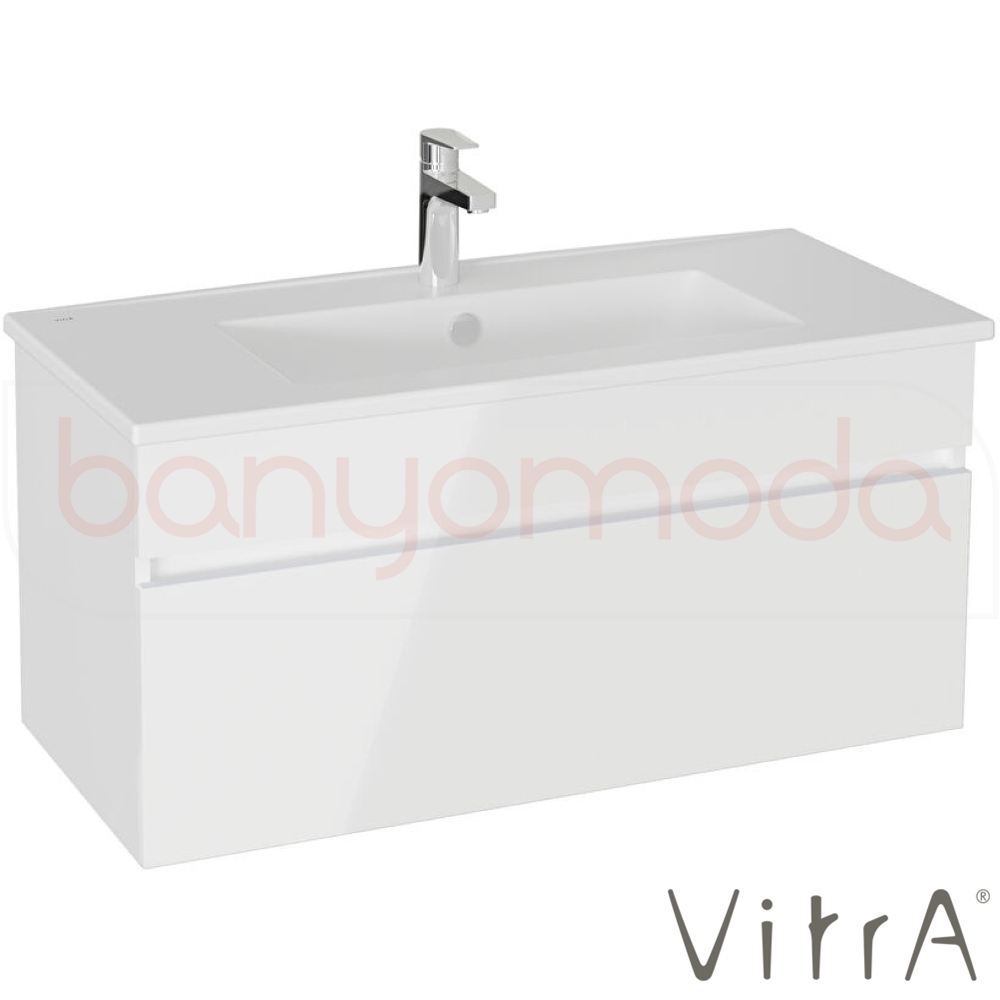 Vitra Mia Plus Square Tek Çekmeceli Lavabo Dolabı, 100 cm, Parlak Beyaz