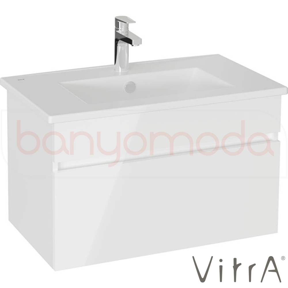 Vitra Mia Plus Square Tek Çekmeceli Lavabo Dolabı, 80 cm, Parlak Beyaz