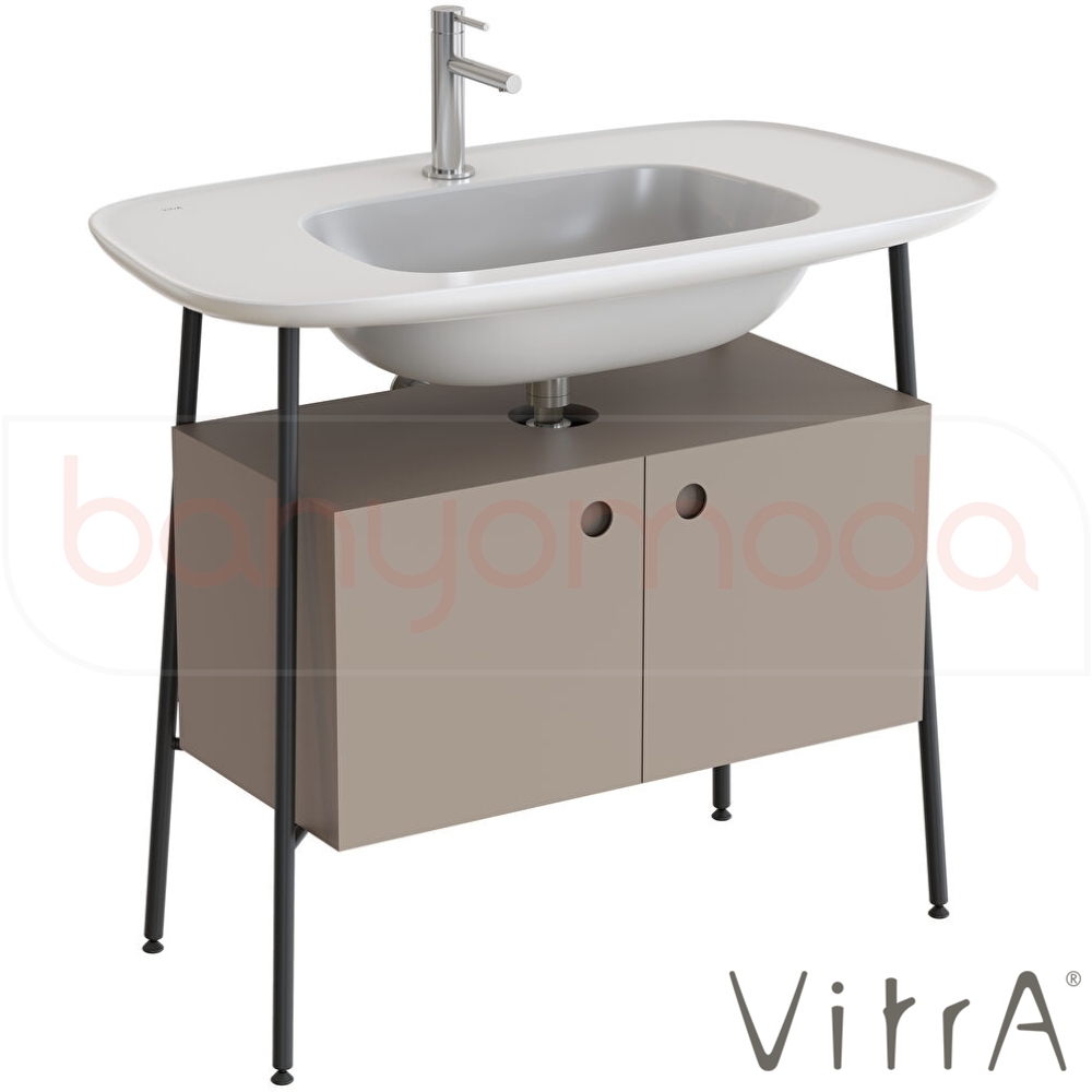 Vitra Plural Kapaklı Etajerli Lavabo Ünitesi, 100 cm, Mat Soft Bej / Parlak Beyaz Lavabo