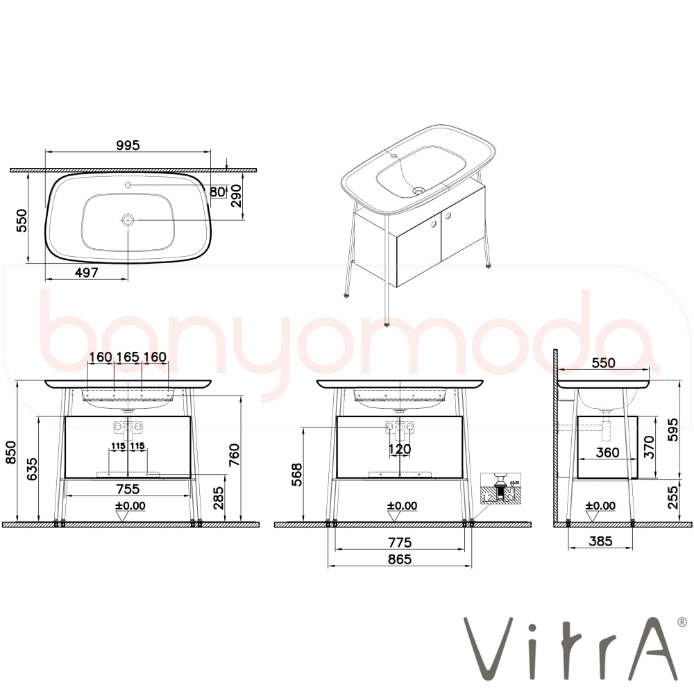 Vitra Plural Kapaklı Etajerli Lavabo Ünitesi, 100 cm, Retro Yeşil / Mat Siyah Lavabo