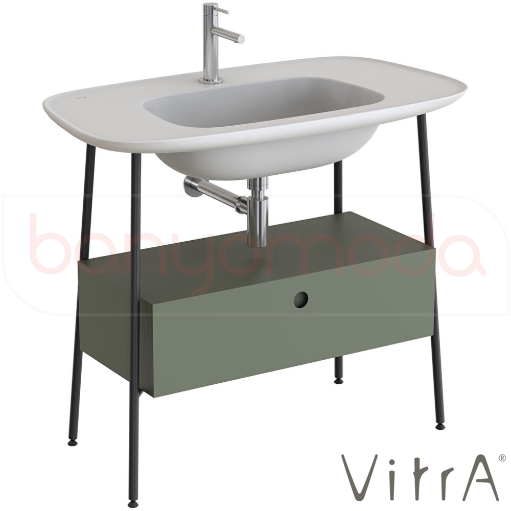 Vitra Plural Tek Çekmeceli Etajerli Lavabo Ünitesi, 100 cm, Retro Yeşil / Mat Beyaz Lavabo