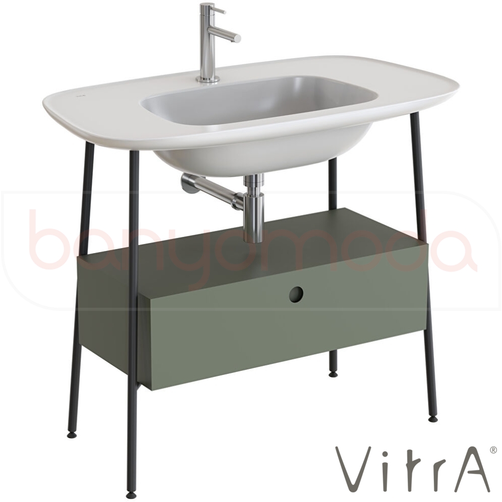 Vitra Plural Tek Çekmeceli Etajerli Lavabo Ünitesi, 100 cm, Retro Yeşil / Parlak Beyaz Lavabo
