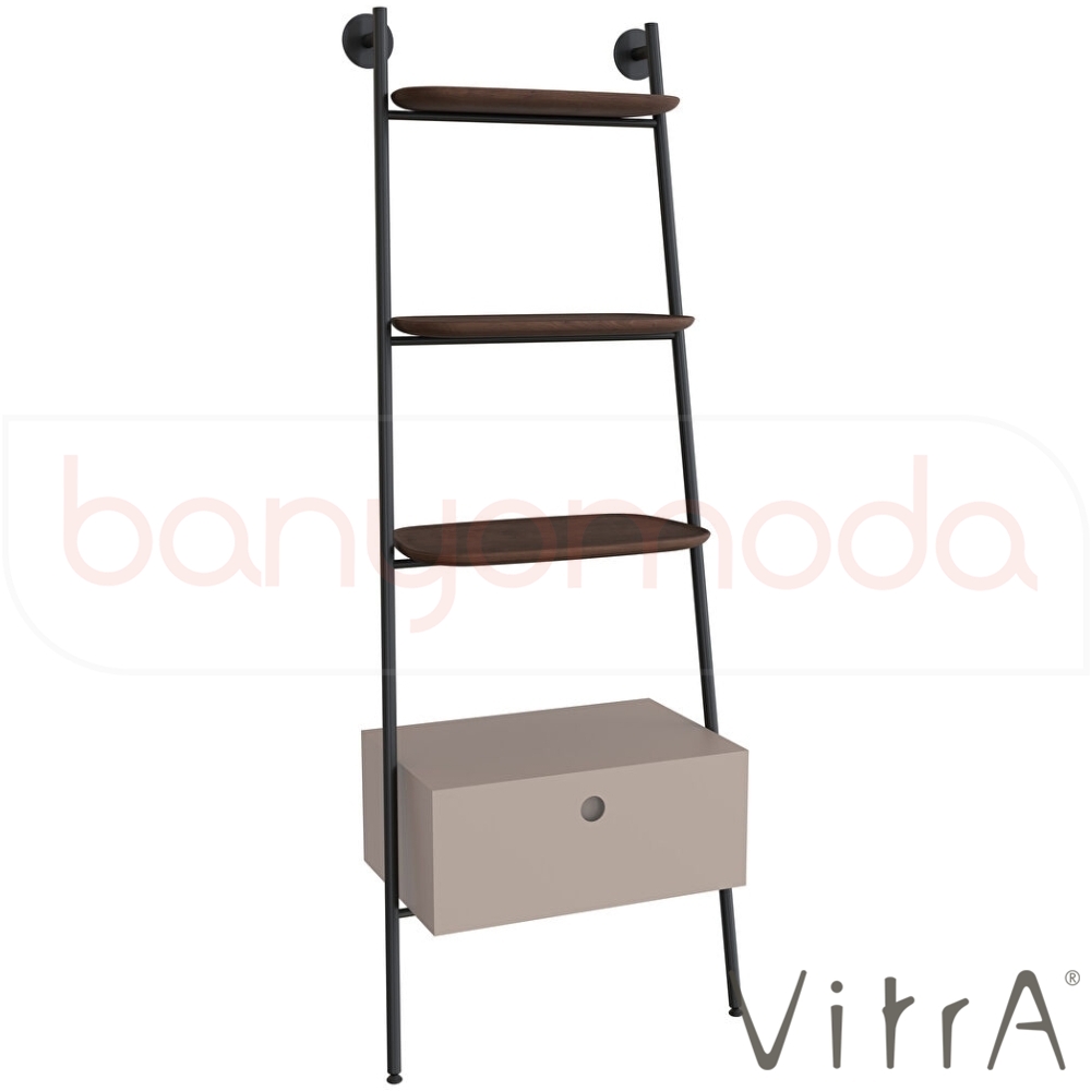 Vitra Plural Tek Çekmeceli Merdiven Raflı Ünite, Mat Soft Bej / Koyu Meşe Raf