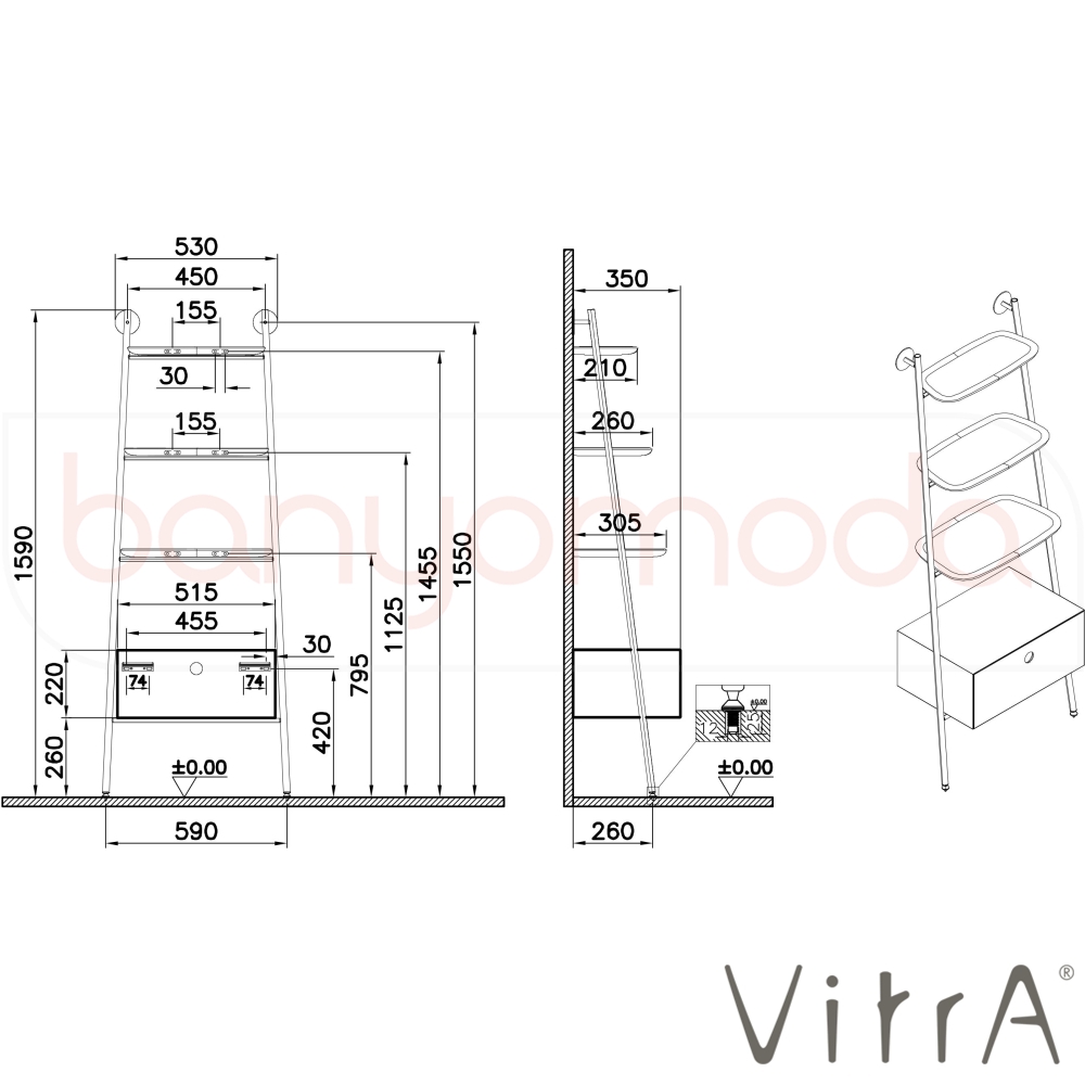 | Ürün Adı: | Vitra Plural Tek Çekmeceli Merdiven Raflı Ünite, Mat Soft Bej / Koyu Meşe Raf |