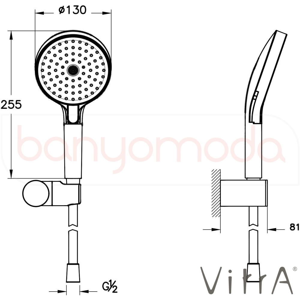 | Ürün Adı: | Vitra Prime Round 3F El Duşu Takımı, Fırçalı Bakır |