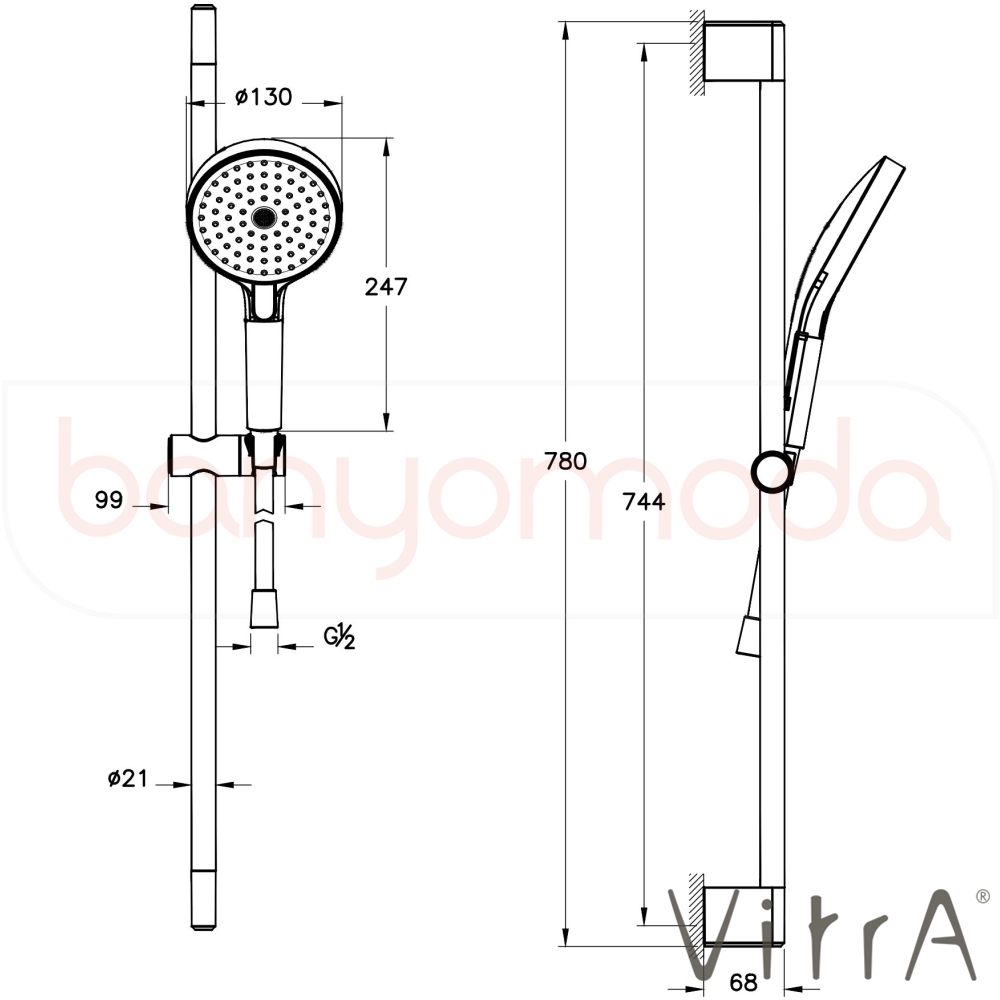 | Ürün Adı: | Vitra Prime Round 3F Sürgülü El Duşu Takımı, Mat Siyah |