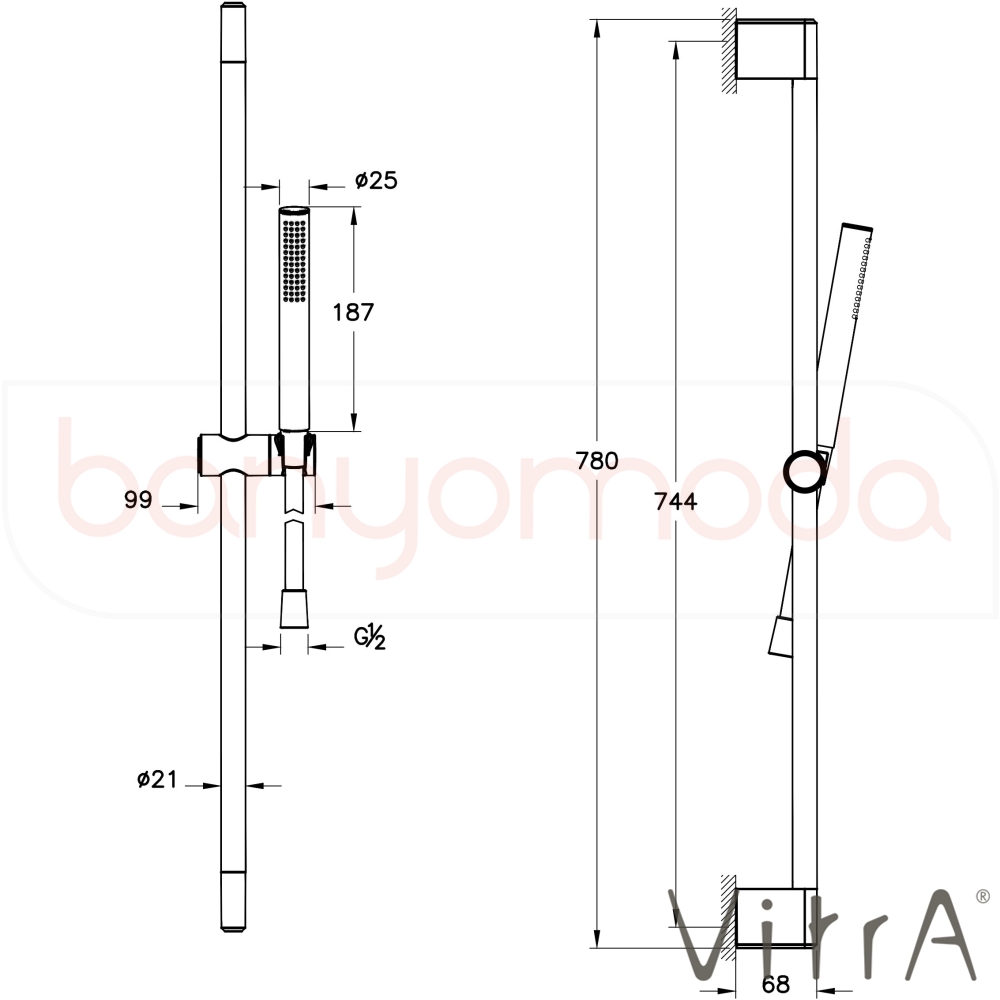 | Genel Açıklamalar: | Akış fonksiyonu: Aquarain. El duşunda yer alan özel debi regülatörü sayesinde maks. 12 L/dk su akışı sağlanmaktadır. El duşundaki silikon noozle biriken kirecin ufak bir el hareketiyle kolayca temizlenmesine ve ürünün uzun ömürlü olmasına olanak veriyor. Chroma-tech spiral tek parça pürüzsüz yüzeyi sayesinde rahatlıkla temizlenebiliyor ve kullanırken dolanmıyor. Spiral uzunluğu 1500mm dir. Sürgü uzunluğu 780mm dir. Eksen mesafesi 744mm dir. G 1/2. |