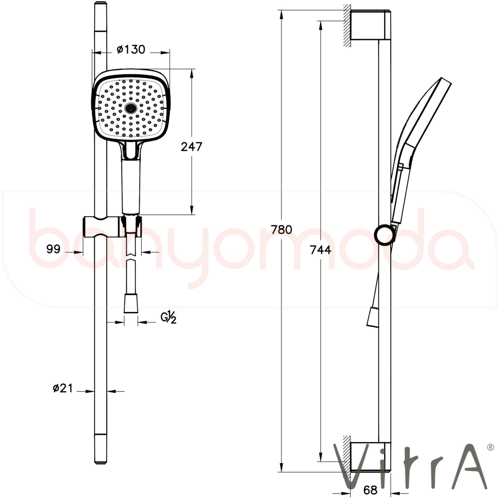 | Ürün Adı: | Vitra Prime Square 3F Sürgülü El Duşu Takımı, Fırçalı Altın |