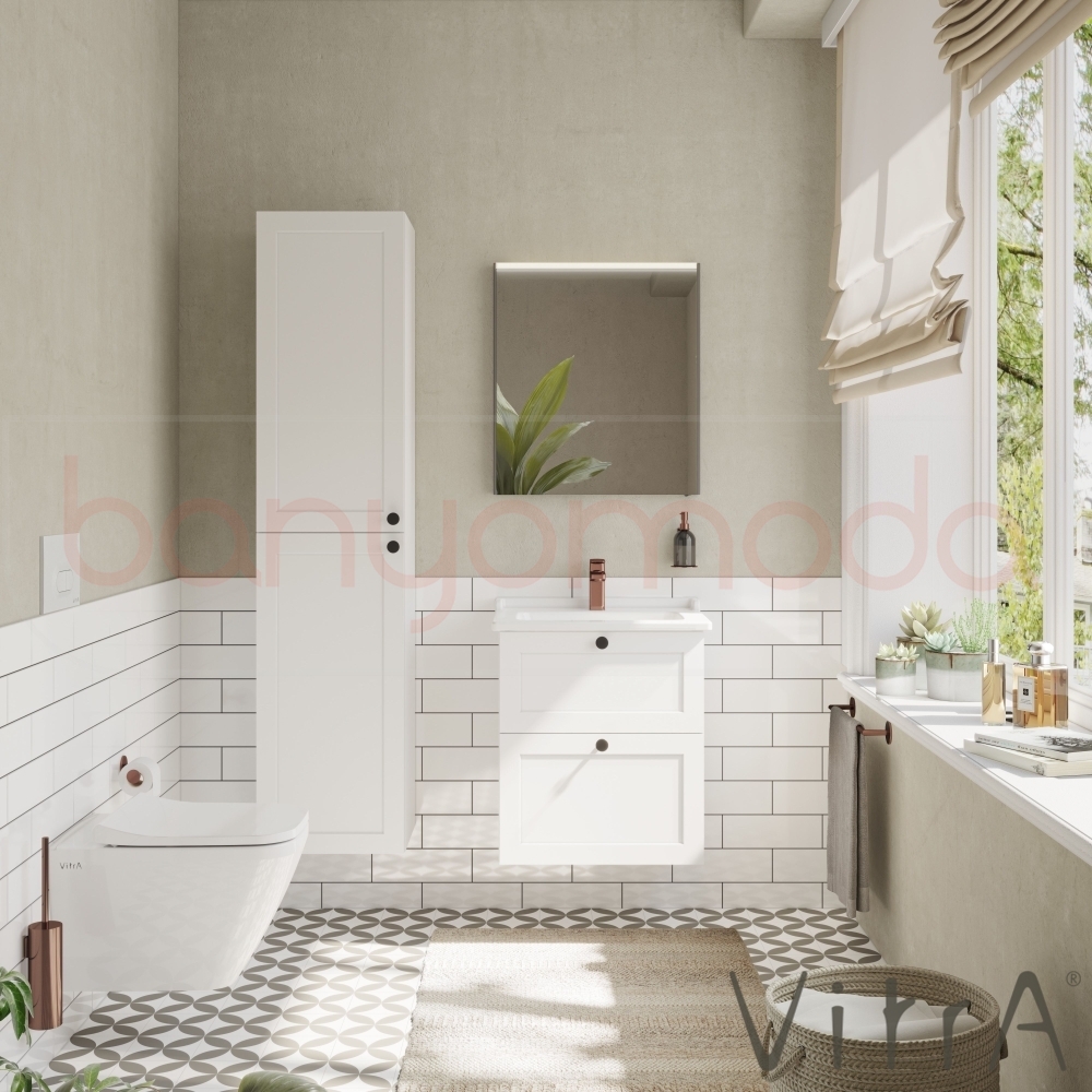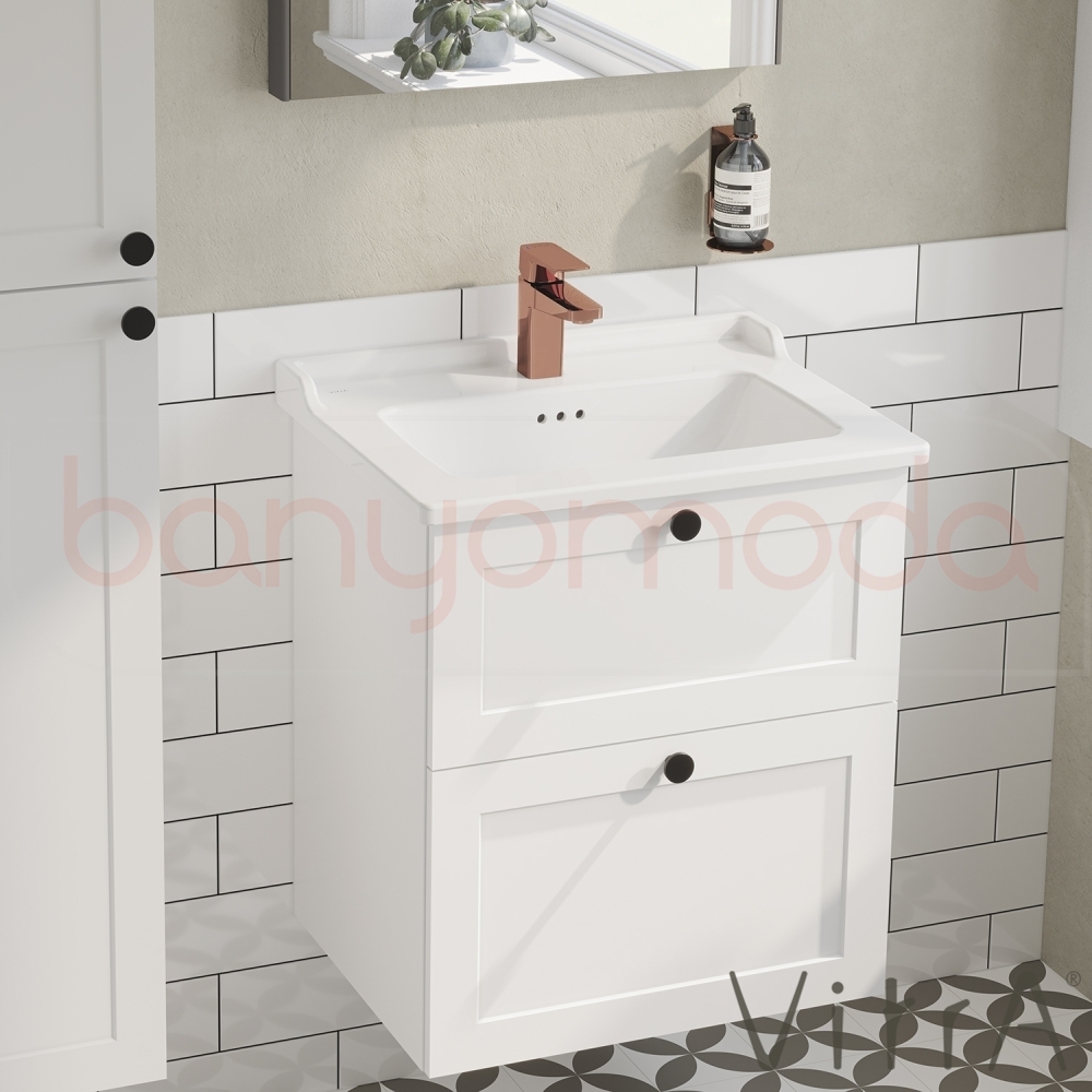 Vitra Root Classic Çift Çekmeceli Lavabo Dolabı, 60 cm, Mat Beyaz (Klasik Lavabo Dahil)