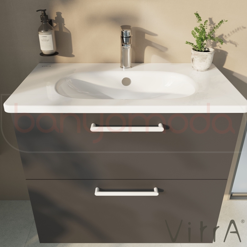 Vitra Root Flat İki Çekmeceli Lavabo Dolabı, 80 cm, Mat Fırtına Gri (Yuvarlak Lavabo Dahil)