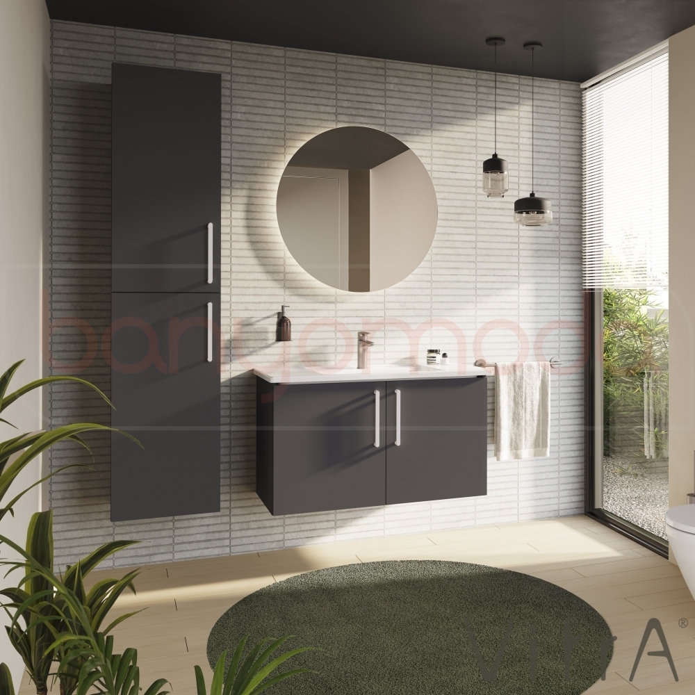 Vitra Root Flat Kapaklı Lavabo Dolabı, 100 cm, Mat Fırtına Gri (Köşeli Lavabo Dahil)
