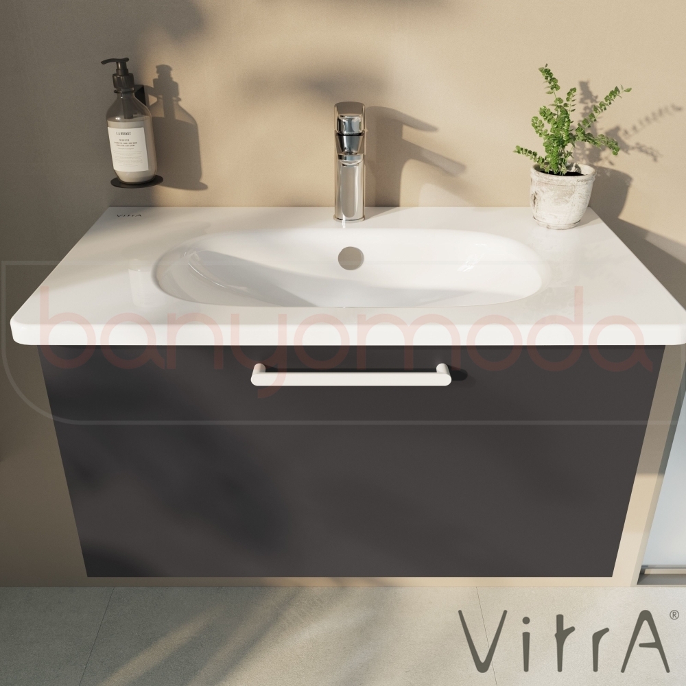 Vitra Root Flat Tek Çekmeceli Lavabo Dolabı, 80 cm, Mat Fırtına Gri (Yuvarlak Lavabo Dahil)