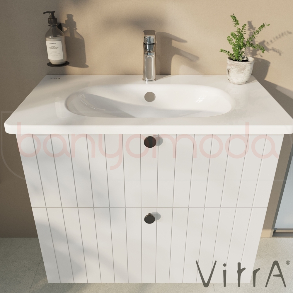 Vitra Root Groove Çift Çekmeceli Lavabo Dolabı, 60 cm, Mat Beyaz (Yuvarlak Lavabo Dahil)
