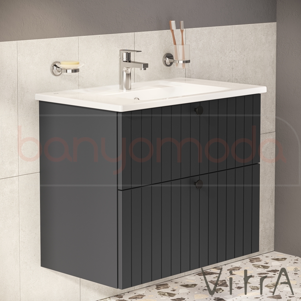 Vitra Root Groove Çift Çekmeceli Lavabo Dolabı, 80 cm, Mat Grafit (Köşeli Lavabo Dahil)